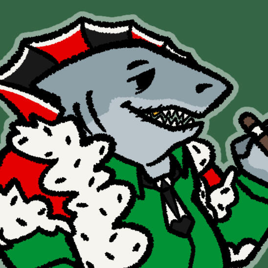he/him, it/that°•◦•°• ◦•°•◦•°• ◦•°•◦•°• ◦•°•◦•°• ◦•°Sleazy horn shark. Hangs out around gambling dens to weasel his way closer to the big shots and bum winnings off of them (if not just pickpocket directly). Ended up taking a genuine liking to Jack. Enjoys sharing Jack's spoils and being his eye candy. WILL flirt with other sharks around the table to distract them for Jack's benefit.°•◦•°• ◦•°•◦•°• ◦•°•◦•°• ◦•°•◦•°• ◦•°tag - #dredge🦈⭐